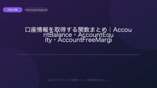 【MQL4】口座情報を取得する関数まとめ|AccountBalance・AccountEquity・AccountFreeMargin・AccountMarginの使い方